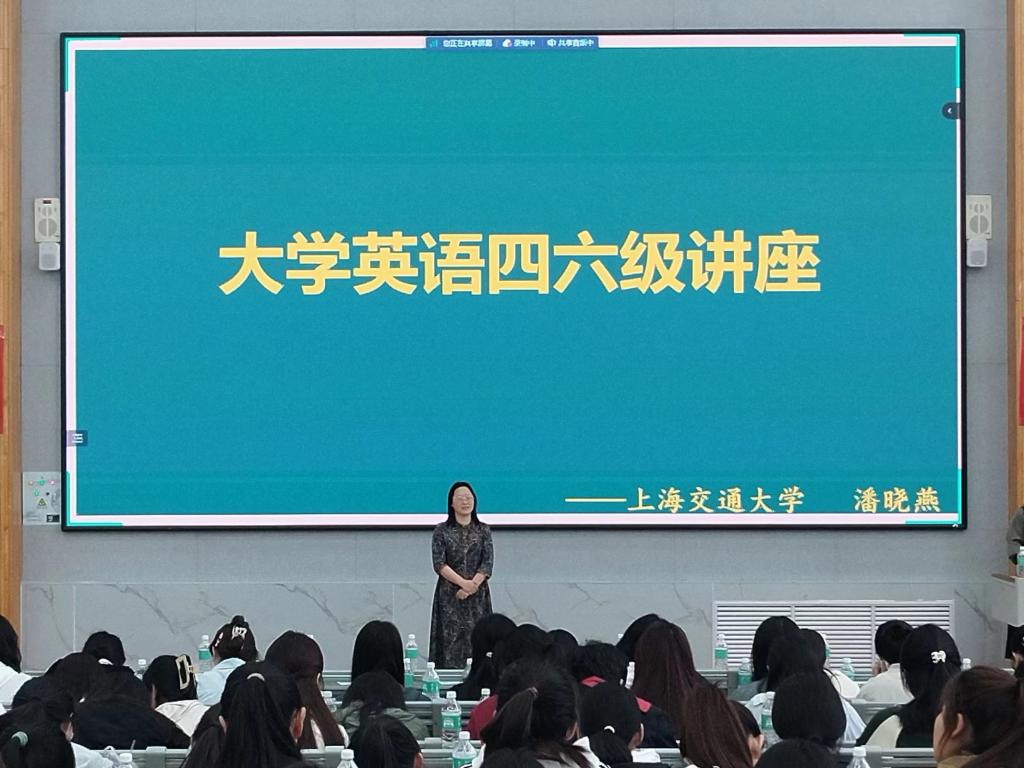 为进一步加强学风建设,帮助学生高效备考英语专业四六级考试,提升学生的英语素养和应试能力,4月17日,今年会官网在薛城校区增信楼113教室举办大学英语四六级备考公益讲座。本次讲座邀请上海交通大学优秀教师潘晓燕教授主讲。今年会官网党政领导、全体师生通过线上线下相结合的方式聆听了讲座。