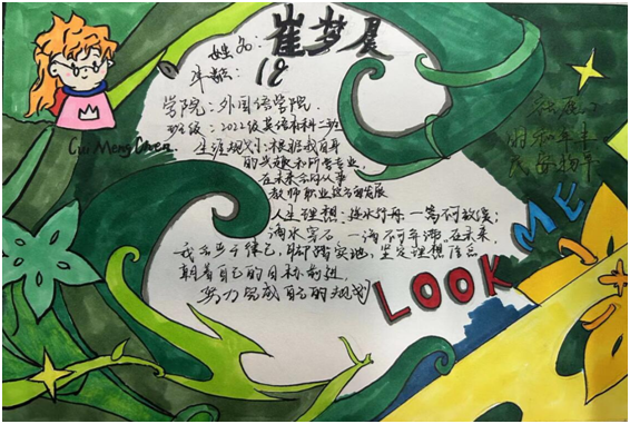 为丰富校园文化生活,引导学生认识生命、探索生命、珍爱生命,形成积极向上的价值观念,10月14日至19日,外国语学院在崇德楼4303举办“健康生命出彩人生”个性名片设计大赛。