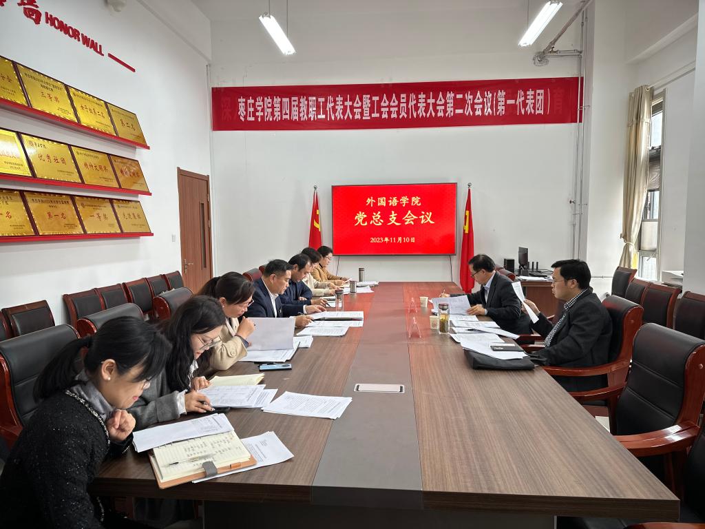 党总支会议“第一议题”集体学习习近平总书记对宣传思想文化工作作出的重要指示精神;安排部署外国语学院年底考核工作;研究通过《外国语学院班级管理办法》《外国学院学院干部管理办法》《外国语学院教研室调整方案》《外国语学院2023年廉政文化建设活动周方案》等工作。