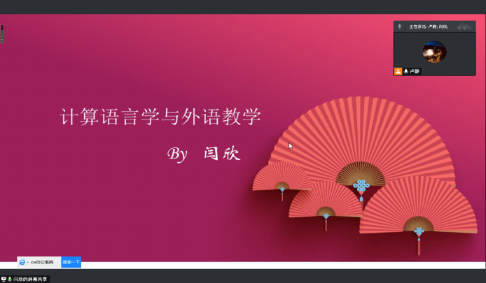 11月23日下午,外国语学院举办第七期“青年学者学术论坛”。此次论坛采取线上方式进行。我院中国矿业大学在读博士闫欣老师作了题为“计算语言学与外语教学”的学术报告,全体专任教师参加了本次学术论坛。