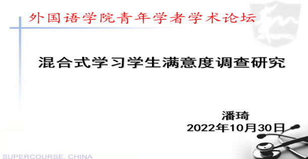 近日,外国语学院举办了第三期“青年学者学术论坛”。此次论坛采取线上方式进行。我院青年教师、目前在马来西亚理工大学攻读博士学位的潘琦老师作了题为“混合式学习学生满意度调查研究”的学术报告。外国语学院全体专任教师和部分学生参加了本次学术论坛。