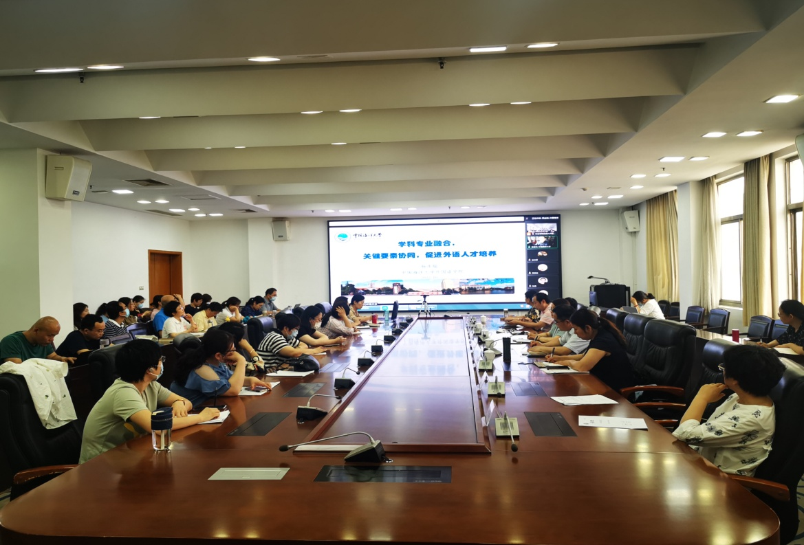 5月25日下午,我校“名师大讲堂”系列学术报告第八讲在综合楼三楼会议室通过腾讯会议方式成功举办。中国海洋大学外国语学院博士生导师、外国语学院院长杨连瑞教授应邀做了题为“外语人才培养中的关键要素协同——兼谈外语教师的专业发展”的学术报告。外国语学院、大学英语教学部全体专业教师、外国语学院师范类专业学生以线上方式参加了会议,会议由社会科学处处长何芳主持。