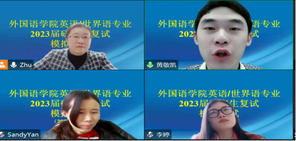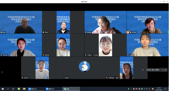 为进一步帮助参加考研复试和调剂的同学了解复试流程、更快地适应复试状态,提高复试实战能力,3月22日至23日,外国语学院通过线上线下相结合的方式组织开展了2023年研究生复试模拟面试活动。此次模拟面试活动分为学科教学组、翻译一组二组与跨专业组和日语语言文学组。