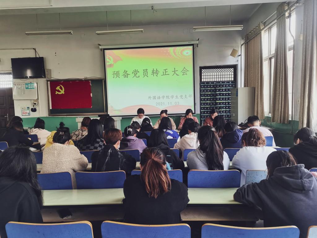 11月3日,外国语学院在文科楼201教室召开预备党员转正大会,讨论关于刘艺等14名同志申请转为中共正式党员的问题,会议由团总支书记、学生党支部书记张婷主持,学生支部全体成员参加了会议。