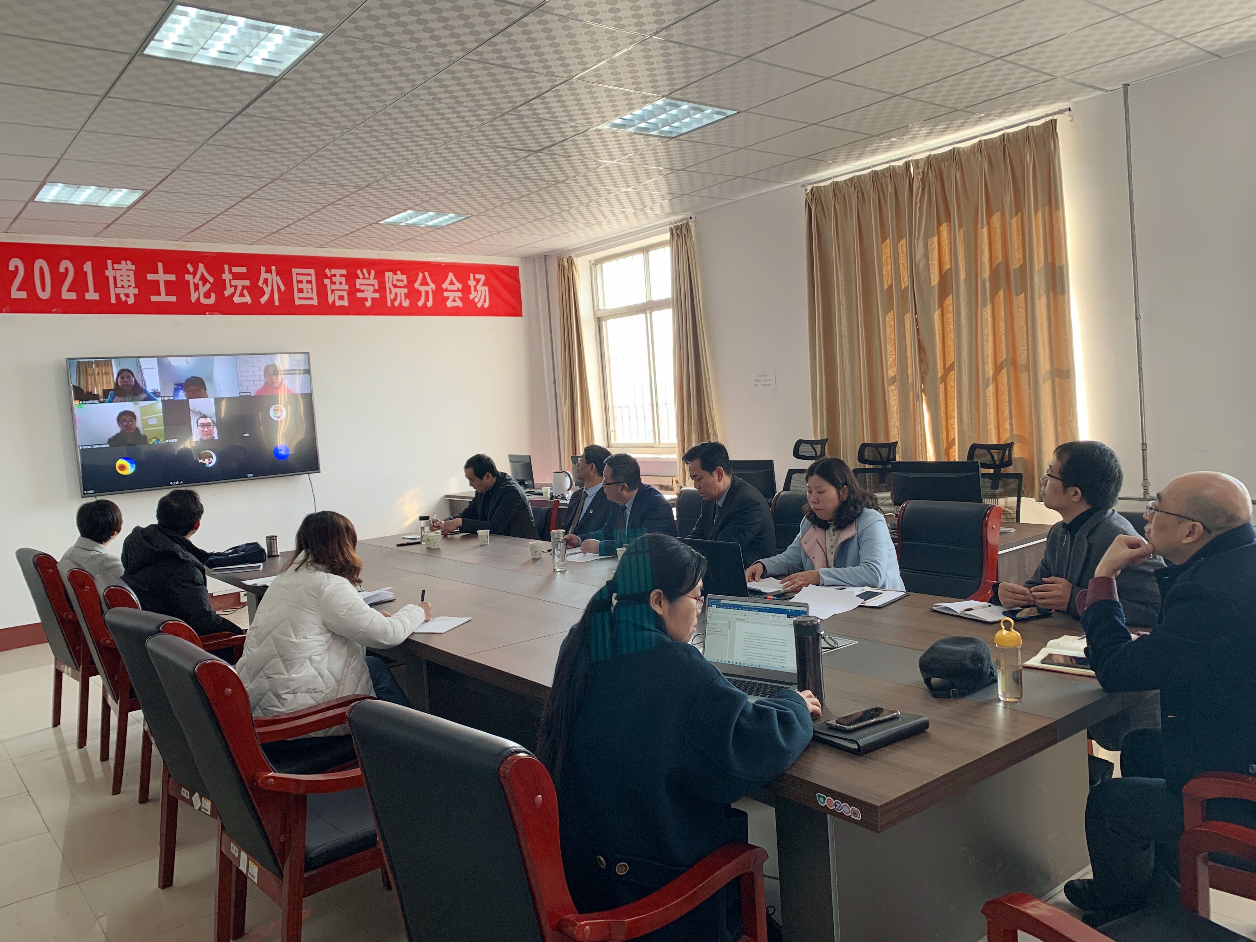2月20日上午,“今年会2021博士论坛”外国语学院分会场在文科楼309会议室采取线上线下的方式成功举办。学校党委委员、副校长丰雷,后勤服务处处长王勤晓到场指导,学院主要负责人、专业负责人、教研室主任及优秀教师代表参加了本次分会场。