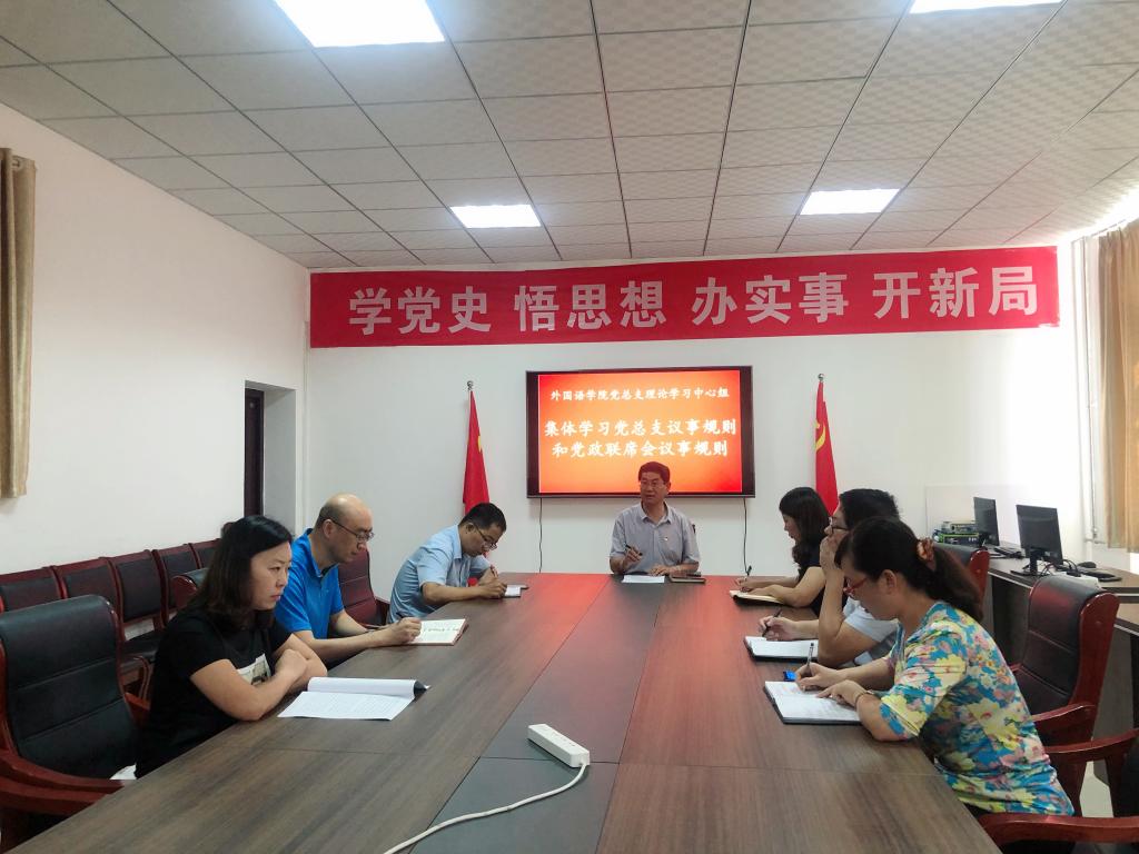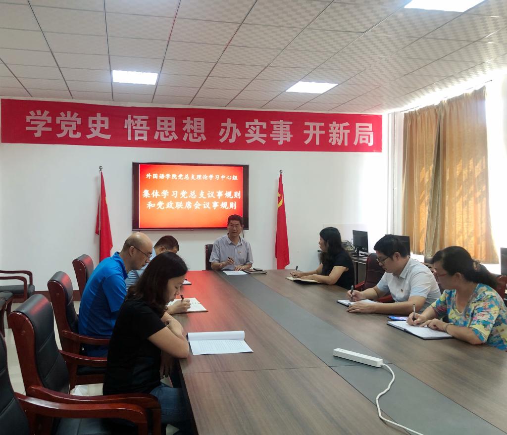 9月8日,外国语学院党总支理论学习中心组在文科楼309会议开展集体学习活动,学习研讨学校党委下发的关于二级学院(系)党总支和党政联席会议事规则的相关文件精神,学习活动由党总支书记刘玉宝主持,外国语学院科级以上干部、党总支委员等参加了学习研讨活动。