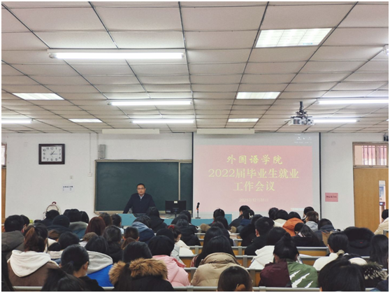 12月31日下午,外国语学院在多媒体106教室召开2022届毕业生就业工作会议。会议由学院党总支书记盛清银主持,外国语学院党政领导、辅导员和2022届全体毕业生参加了会议。