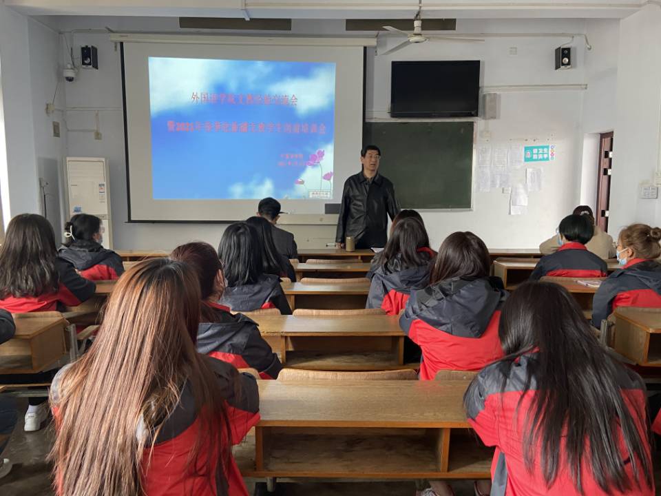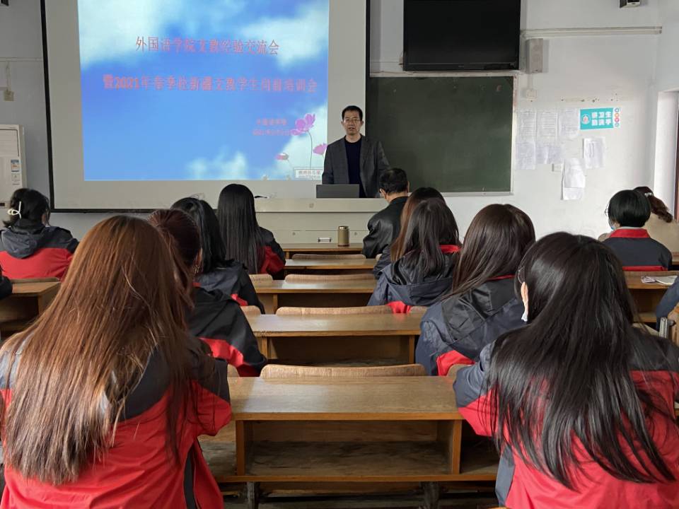 3月5日下午,外国语学院在文科楼313教室召开支教经验交流会暨2021年春季赴新疆支教学生岗前培训会。学院党政领导、部分教师代表以及即将赴新疆支教的24位同学参加了会议。会议由党总支副书记黄成亮主持。