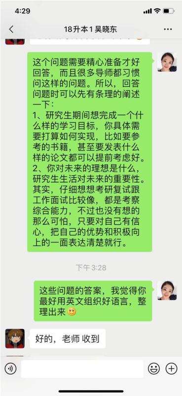 为了使参加考研的学生更好地掌握研究生入学考试复试的经验与技巧,提高考研通过率,3月26日—4月3日,外国语学院组织专业教师对考研初试成绩有望过国家资格线的同学进行了“一对一”线上辅导。